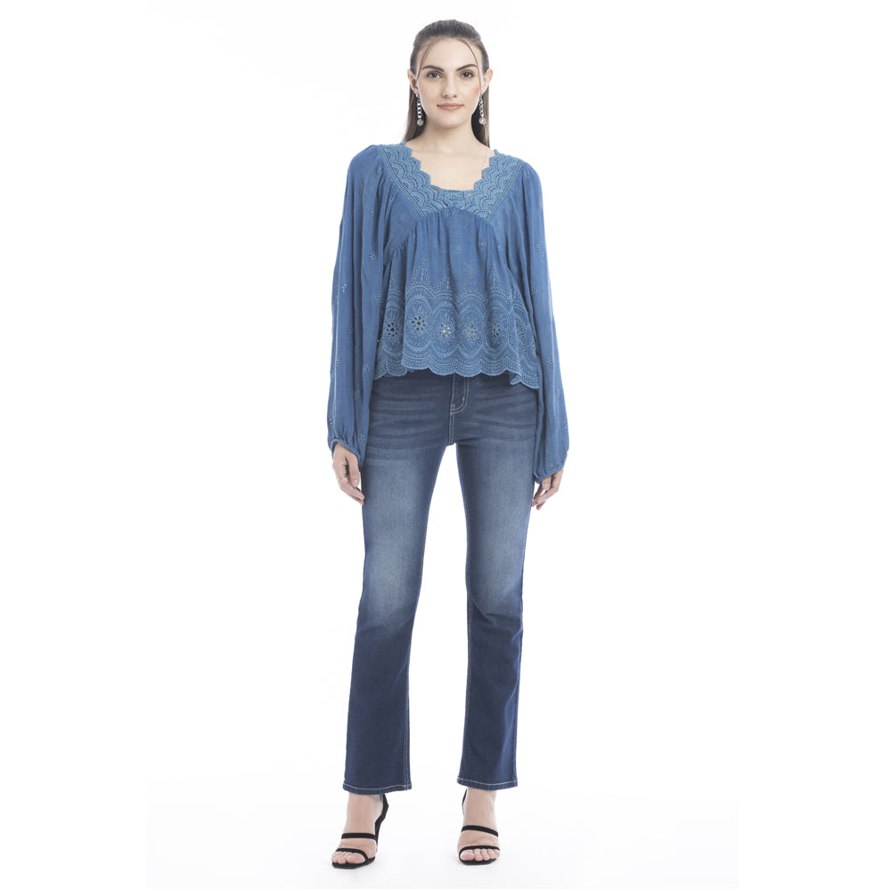 bohera sheela western-inspired yoke embroidered shirt