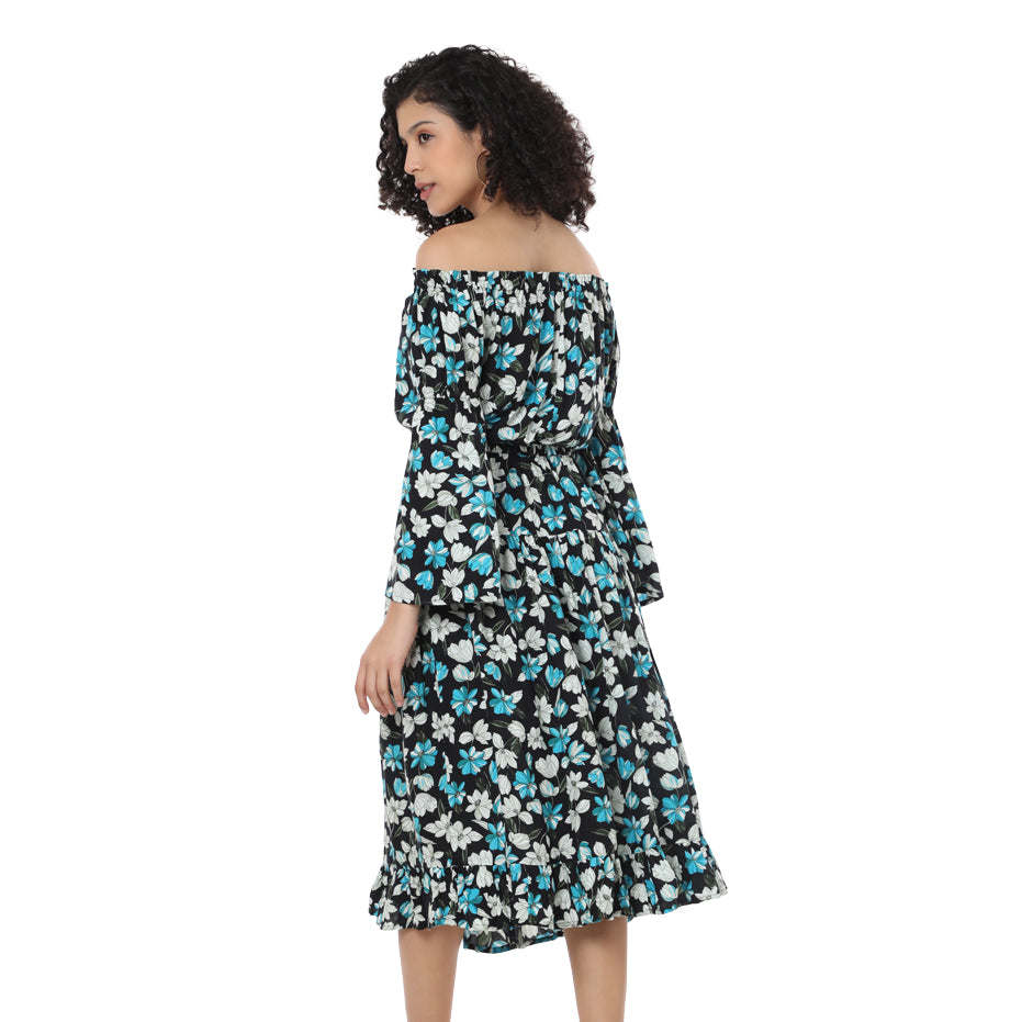 This regal looking full sleeve princess dress with blue floral prints will enrich your look with just the right amount of feminine softness and charm.